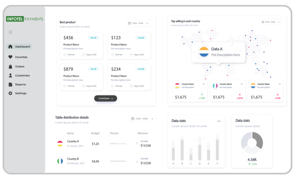 Infotel Payments for Banks &FIs offers a premier white-label solution for leading global financial services. Seamlessly integrate our innovative product suite into your offering and provide your clients with a personalized financial experience. Benefit from extensive customization options without the complexity of building your own payment network.