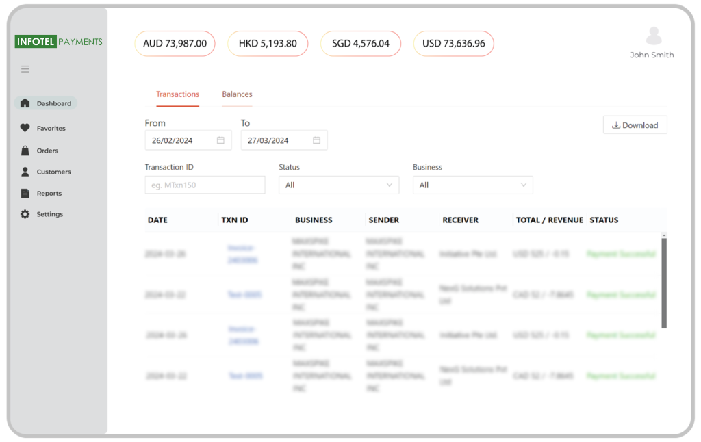Our advanced platform lets you send a single transfer, seamlessly converting it into multiple local currencies, saving you from expensive wire fees. Access multiple countries with ease and manage payments in various currencies through Infotel Payment’s unified solution for businesses of any size.