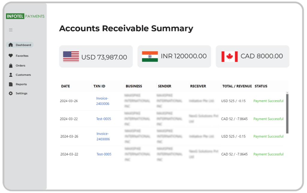 Receivables from Infotel Payments is the simple way to receive money locally with speed and ease. Receive and hold multiple currencies globally into your Infotel Payments wallet. Perfect for businesses of any size – SMEs, Enterprises, FI’s, Freelancers, etc. Receivables streamlines the process of receiving funds seamlessly. Setting up your account is easy. Just upload your invoice, share your account details and request money with a few clicks.