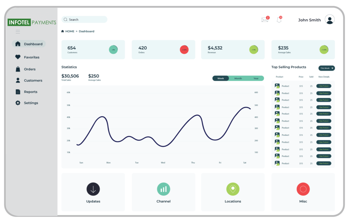 Leverage the capabilities of the Infotel Payments Platform to stay on top of transactions of various kinds with custom filters and time periods. Users can generate reports and conduct searches across transactions, ensuring seamless monitoring and real-time transparency.